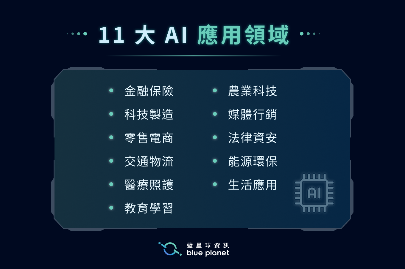 首頁 / 最新消息 / 藍星球報你知 / AI應用如何提升效益?6大核心技術&企業導入實例全解析!